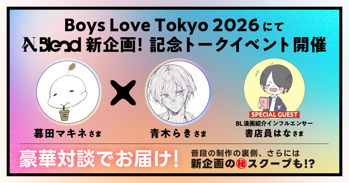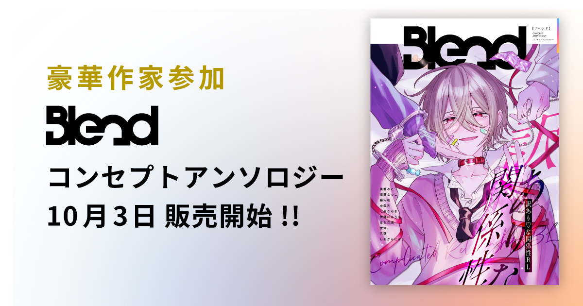 多種多様な"癖"が集まっているBL作品を、 好きなものを好きな形で発信できる場としてあり続けたい。 ジャンルの多様さを強みに、BLの個性を生かした企画を実施していきたい。 私たちBlendは、様々な「好き」が「混ざり合い・溶け合う」ことで、 BL作品の魅力を最大限に引き出していく、プロデュースブランドです。 皆さまの「好き」を読者に届け、新たな「BL」の世界を広げていきます。