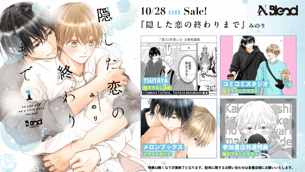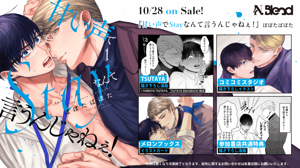 こんにちは!BL漫画プロデュースブランド「Blend」運営チームです。ついに本日、商業BLレーベル「N.Blend」より人気3作品の単行本が発売されました!✨