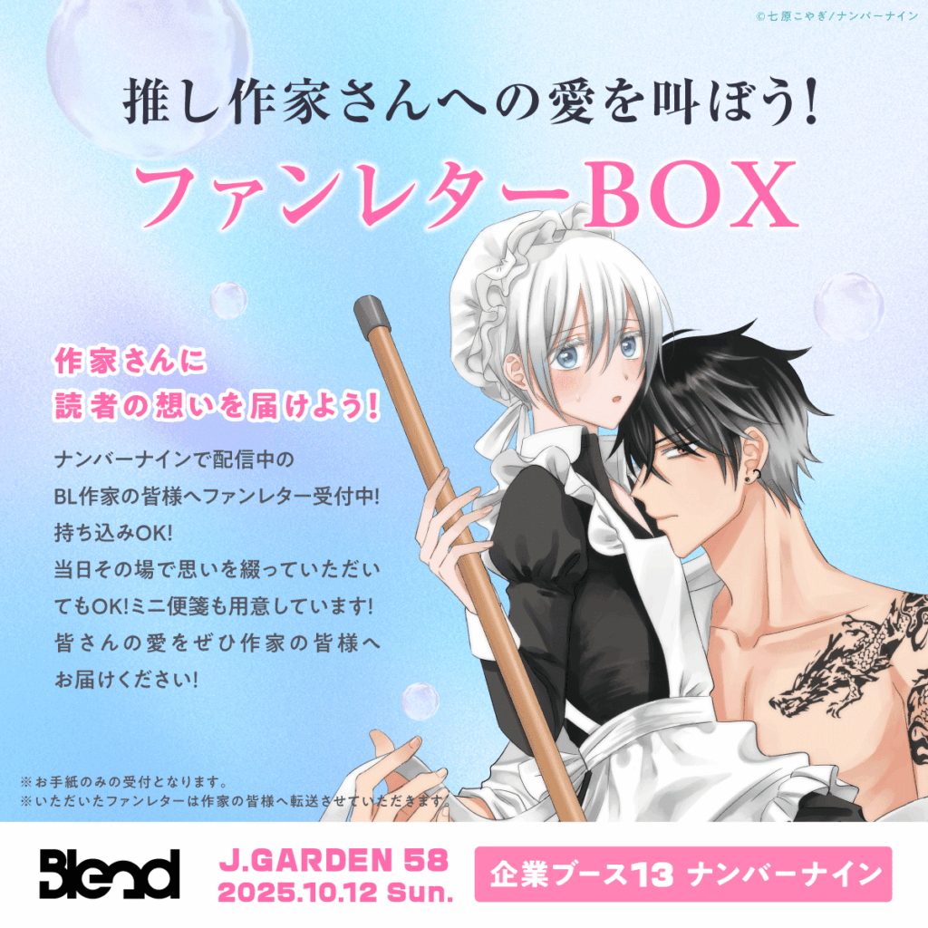 ナンバーナインで配信中のBL作家の皆様へファンレター受付中!